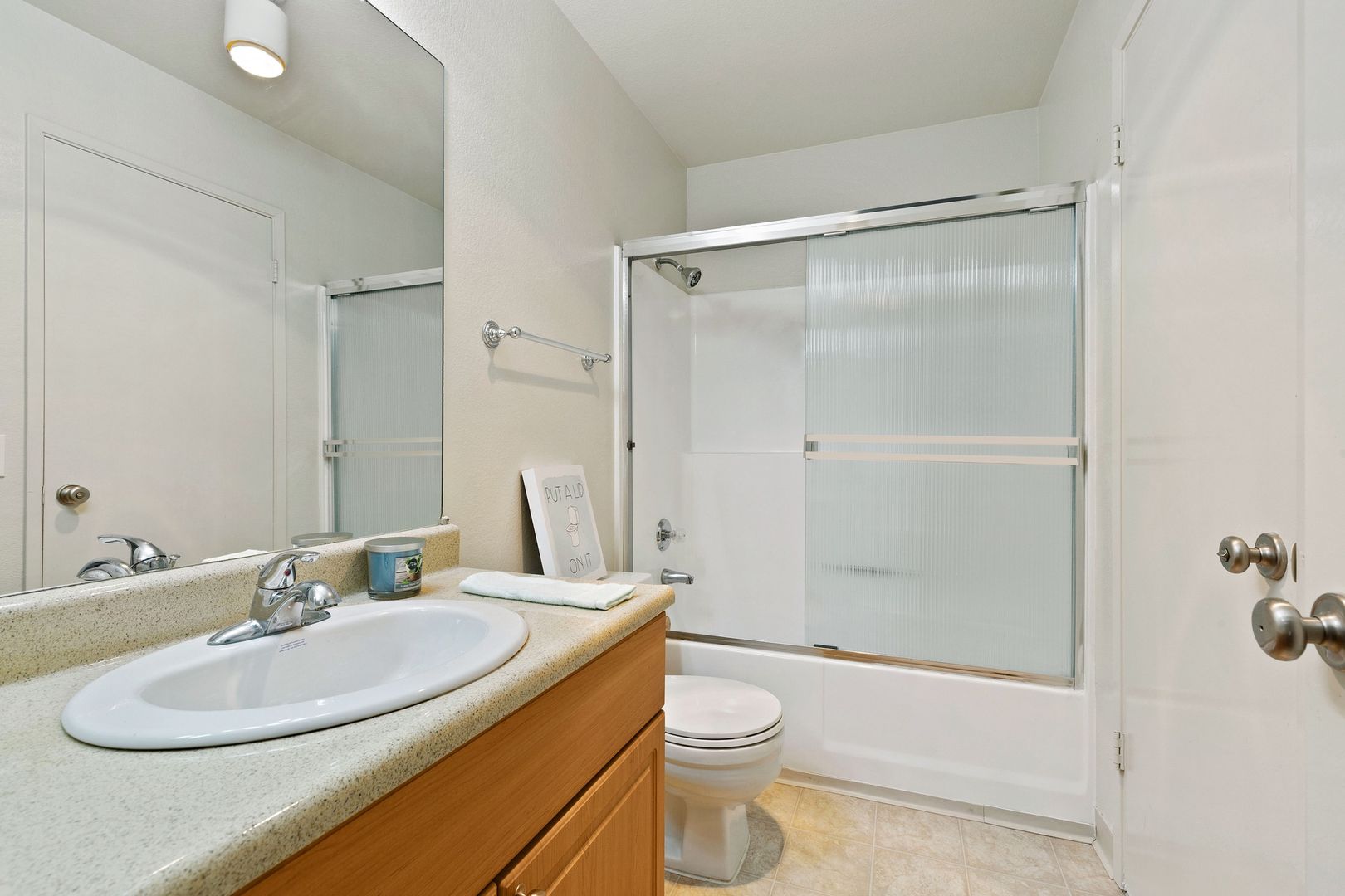 • Well-appointed bath(s) with vanity, chrome plumbing fixtures and easy-care tub/shower surround with glass enclosure